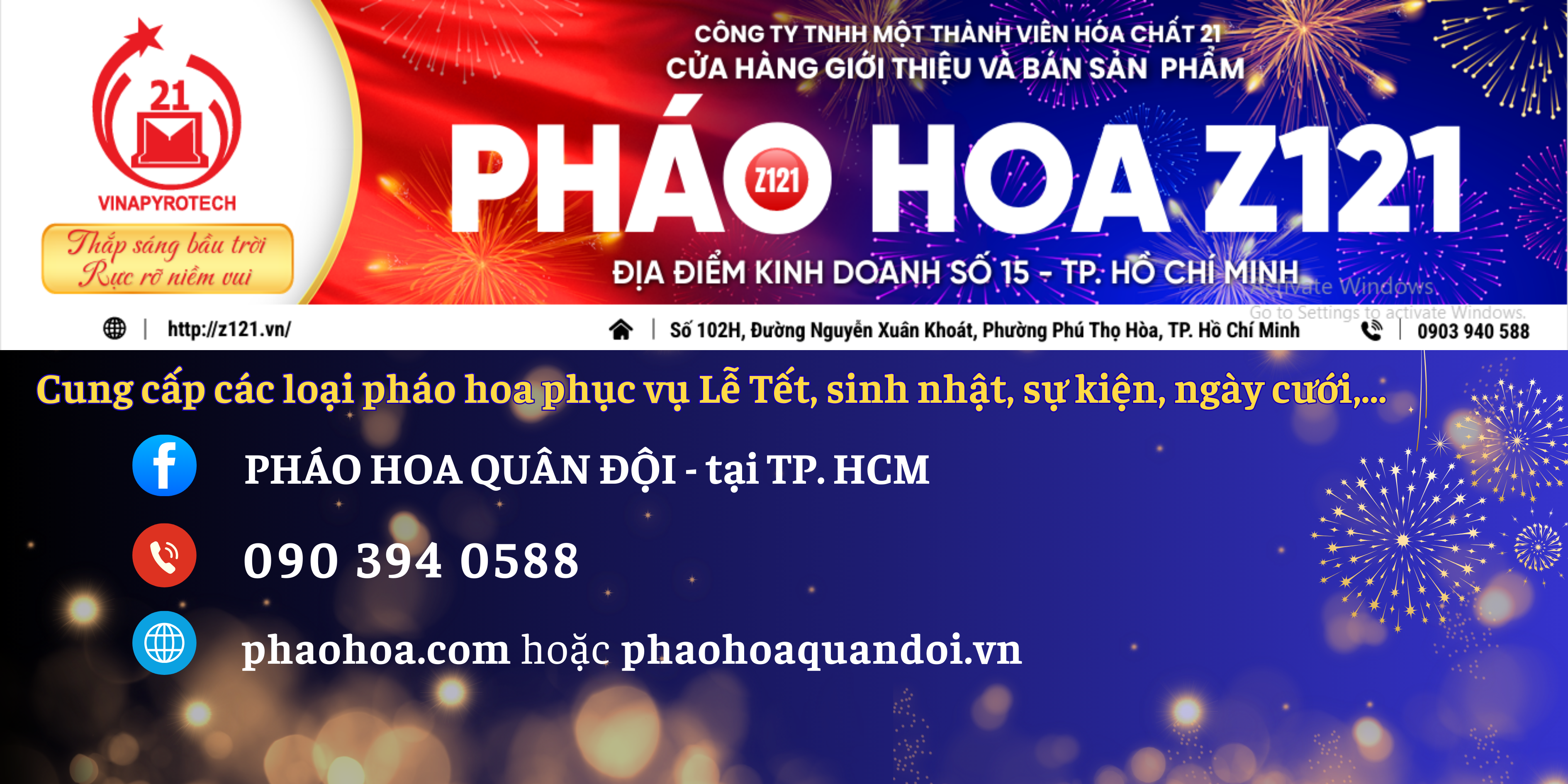 Hiện nay, Công ty TNHH Một thành viên Hóa chất 21 (hay còn gọi là Nhà máy Z121), Tổng cục Công nghiệp Quốc phòng là đơn vị duy nhất được Bộ Quốc phòng cho phép sản xuất và phân phối các sản phẩm pháo hoa quân đội. Theo đó, Bộ Quốc phòng cho phép các cửa hàng được cấp phép uỷ nhiệm giới thiệu và bán pháo hoa quân đội của Nhà máy Z121 kinh doanh trên nhiều tỉnh thành của cả nước. Tại khu vực Quận Tân Phú, TP. HCM, quý khách hàng có thể đến địa chỉ: Cửa hàng Pháo hoa Quân đội tại 102H Nguyễn Xuân Khoát, P. Tân Thành, Q. Tân Phú, TP. HCM hoặc đặt hàng trên website: phaohoaquandoi.vn hoặc phaohoa.com để được mua các sản phẩm pháo hoa chính hãng của Nhà Máy Z121.